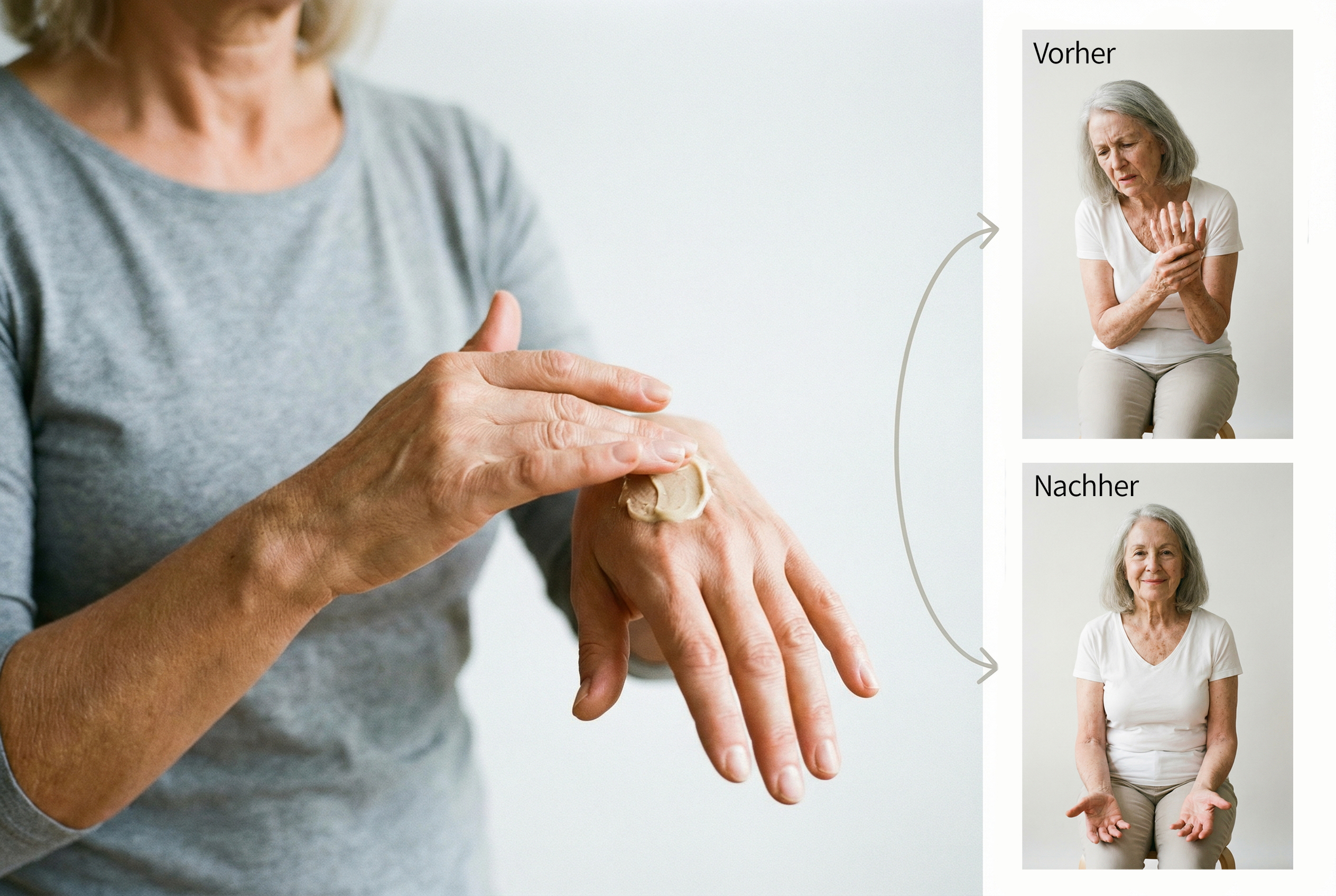 👉 Bedeutet: Du nutzt sie wirklich konsequent – und genau das ist bei chronischen Hand- & Arthrose-Beschwerden der Unterschied zwischen „kurz probiert“ und „spürbar besser im Alltag“.